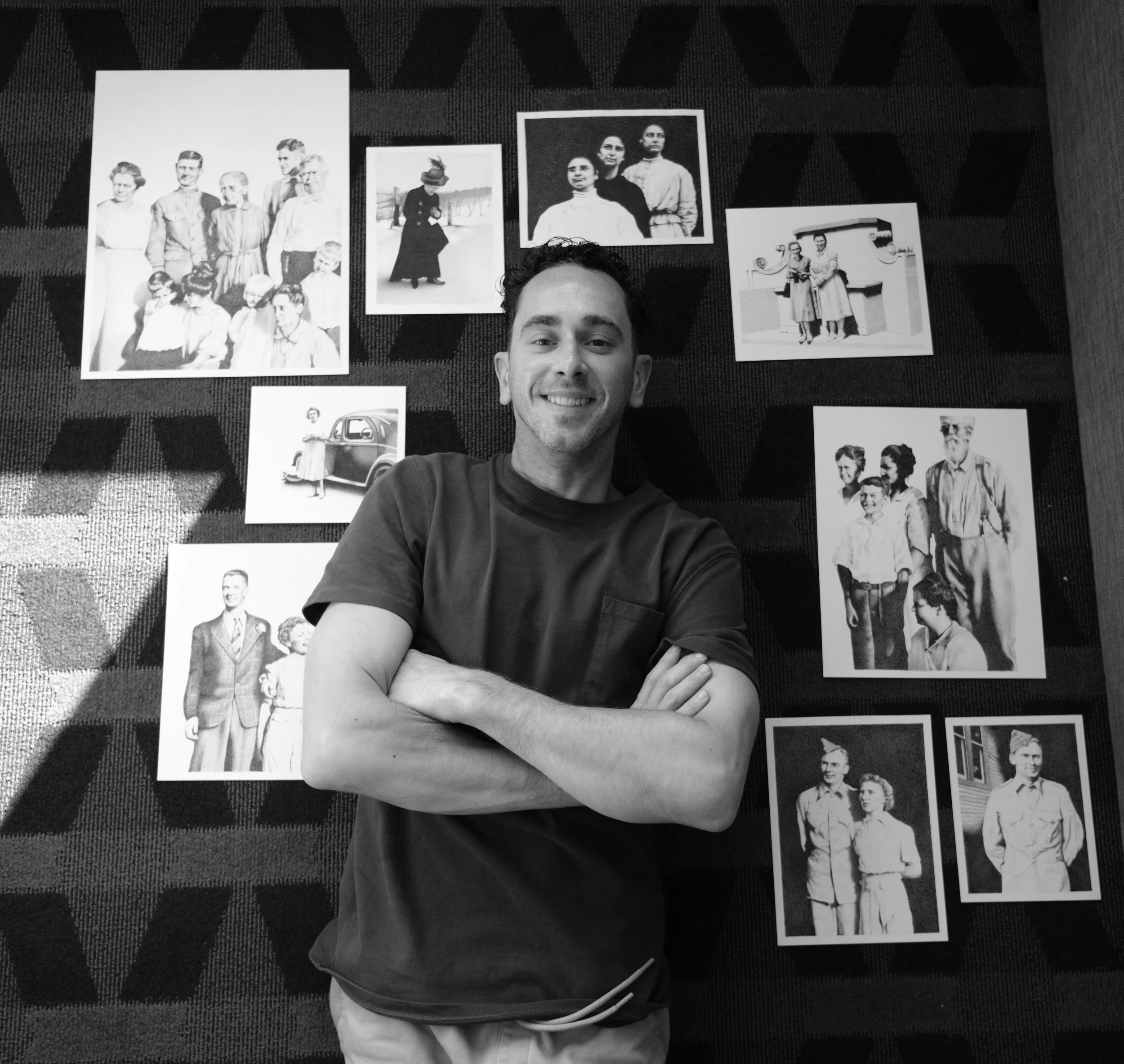 “Forgotten People” is a series of drawings based off old photographs found at antique shops throughout Ethan’s travels. He is drawn to unknown people whose lives have never been touched by the internet and the stories we invent from a single snapshot in time. The subjects are meant to remain anonymous, and the original photographs will not be shown